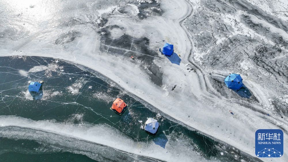 12月28日,游客在河北省承德市興隆縣一處景區(qū)冰釣(無人機(jī)照片)。