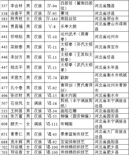 2月19日,文化和旅游部公示了第六批國家級非物質(zhì)文化遺產(chǎn)代表性傳承人推薦人選名單。此次公示的名單共計有958人,河北省入選41人。