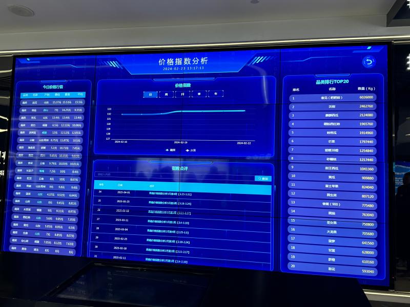首衡高碑店市場展示中心智慧化管理系統(tǒng)電子屏幕上的價格指數(shù)分析