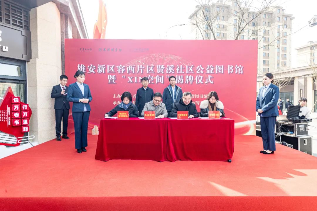促閱讀,啟民智,打造閱讀空間,助推文化建設(shè)。在京津冀協(xié)同發(fā)展國家戰(zhàn)略實施十年之際,2月26日11時,由首都圖書館、天津圖書館、河北省圖書館與雄安新區(qū)宣傳網(wǎng)信局共同舉辦的雄安新區(qū)容西片區(qū)賢溪社區(qū)公益圖書館暨“XIN空間”揭牌儀式成功舉行。
