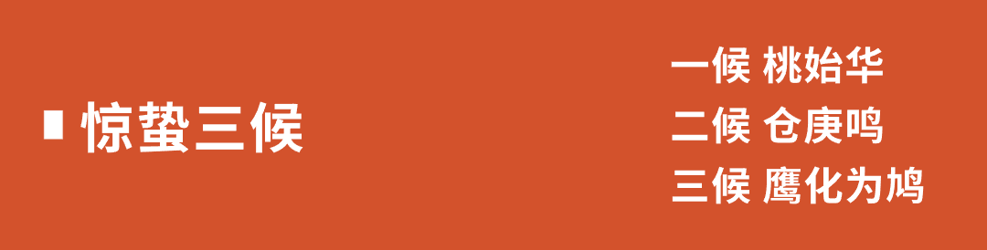 “微雨眾卉新,一雷驚蟄始”。驚蟄,是二十四節(jié)氣的第三個節(jié)氣,一般在每年的3月5日或6日交節(jié)!对铝钇呤蚣狻分姓f:“二月節(jié),萬物出乎震,震為雷,故曰驚蟄”,古人認(rèn)為,農(nóng)歷二月中,春雷始鳴,驚醒了蟄伏于地下冬眠的百蟲,萬物開始復(fù)蘇。萬物復(fù)蘇當(dāng)然不是因為雷震,而是到了驚蟄,就進(jìn)入了“數(shù)九”的最后一“九”了,氣溫回升加快,陽光和微風(fēng)都變得溫暖起來,春天來了。植物們努力地探出頭來萌動,動物們舒展身子打著哈欠,“一切都像剛睡醒的樣子,欣欣然張開了眼” 。