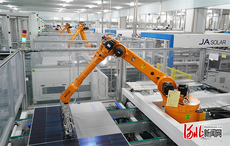 1月3日,晶澳(邢臺(tái))太陽(yáng)能有限公司智能化車間,自動(dòng)排版機(jī)在光伏組件生產(chǎn)線作業(yè)。 河北日?qǐng)?bào)記者 趙永輝攝