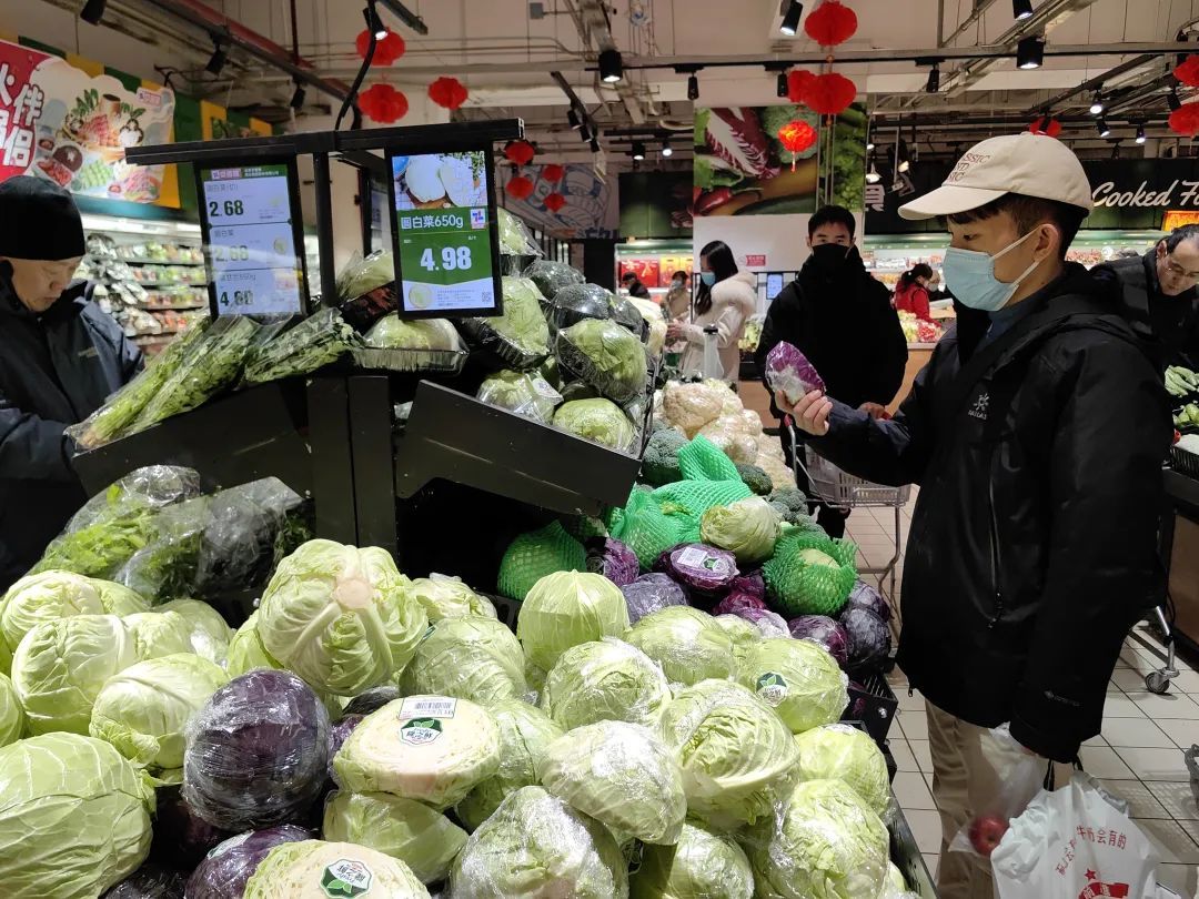 春節(jié)前,市民安女士在京客隆超市(京源店)購(gòu)買過(guò)年的食材,生鮮區(qū)的貨架上,蔬菜、水果琳瑯滿目:“品種非常豐富,價(jià)格平穩(wěn),供應(yīng)也特別充足,我選購(gòu)的時(shí)候還是看重蔬菜的新鮮度!