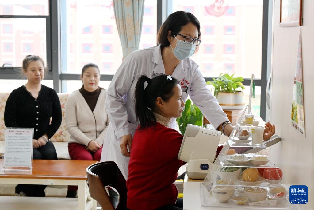 3月7日,在河北石家莊市婦幼保健院,醫(yī)生在為家政從業(yè)人員測量血壓。  新華社記者 王曉 攝