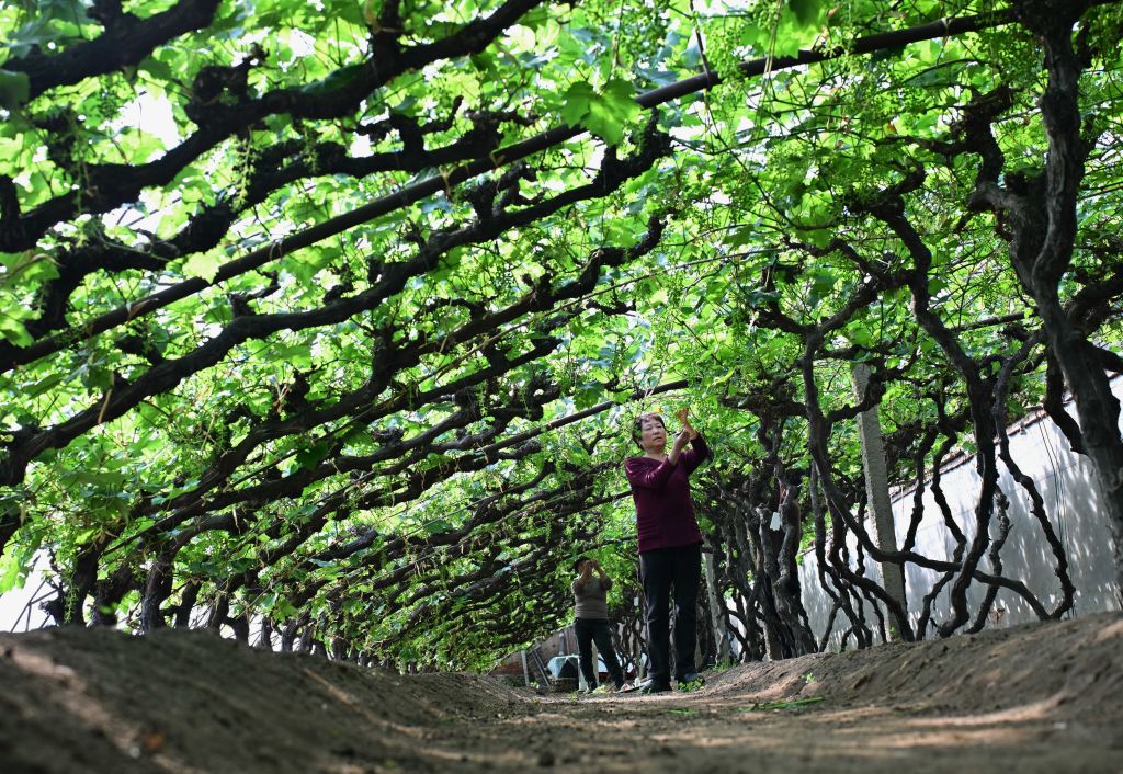 3月12日,河北省灤州市東安各莊鎮(zhèn)的果農(nóng)在大棚內(nèi)管護(hù)葡萄。新華社記者楊世堯攝