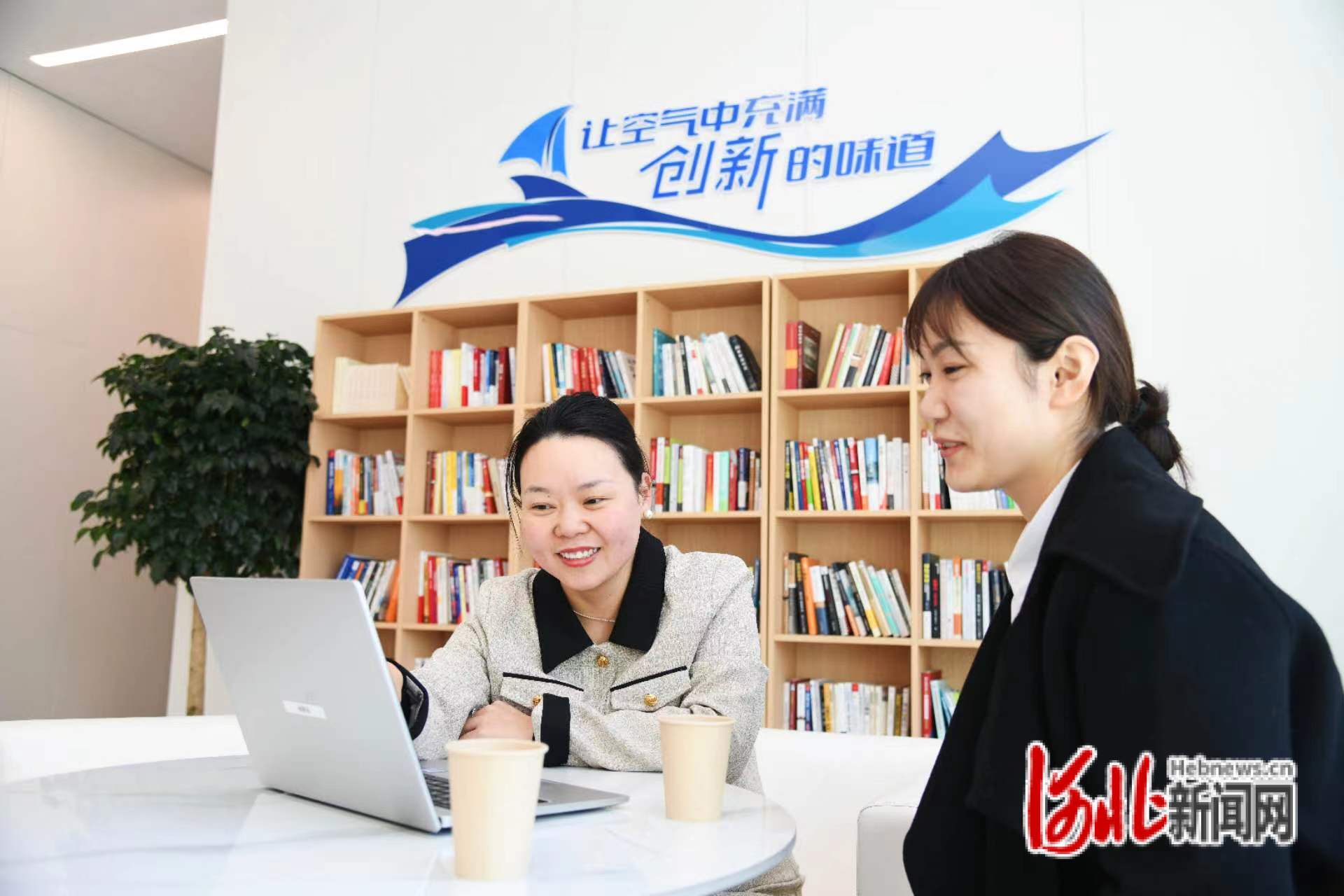 圖為在雄安科創(chuàng)中心里的“科創(chuàng)書吧”,工作人員在為創(chuàng)業(yè)者講解創(chuàng)投政策。趙榮昊攝