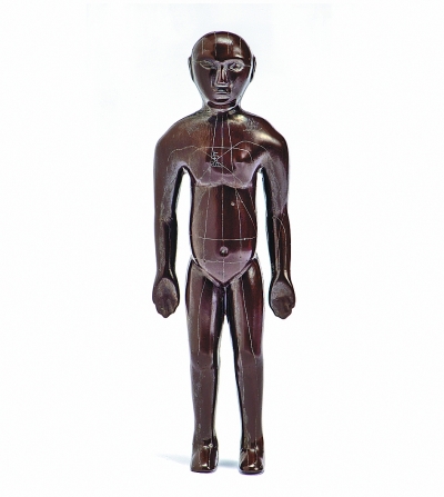 經(jīng)脈腧穴理論是中醫(yī)理論體系的重要組成部分,是針灸學(xué)術(shù)和臨床實(shí)踐的核心理論。腧穴最早的記載形式為文字,而后有繪圖,最后才有模型。目前已知有關(guān)經(jīng)脈的記載最早見于馬王堆漢墓出土的帛書,但僅有文字資料,缺少直觀形象的人體經(jīng)穴圖或?qū)嵨镒鳛檠芯繀⒄瘴,一些?jīng)脈的具體走向和腧穴的準(zhǔn)確位置難以明確。1993年,四川綿陽(yáng)雙包山漢墓出土的針灸漆人,打破了實(shí)物資料缺乏的困境,但該人像僅有經(jīng)脈循行,并無腧穴標(biāo)識(shí),且保存不完整,可考證的信息相對(duì)不全!疤旎蒯t(yī)簡(jiǎn)”及經(jīng)穴漆人像的出土,再次為早期經(jīng)脈腧穴理論的研究提供了客觀的文字資料和形象的醫(yī)學(xué)模型。