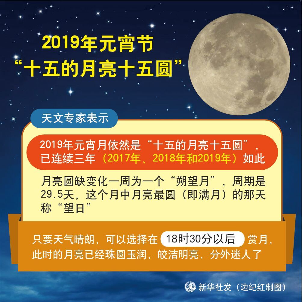 19日,元宵節(jié)。今年元宵節(jié)是“十五的月亮十五圓”。根據(jù)天文精確推算,19日17時3分月球過近地點(diǎn)的距離只有35.68萬千米,是月球全年距離地球最近的一刻,此時月亮視直徑最大。23時54分為“望”,此時月亮呈現(xiàn)“最圓”。