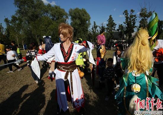 2018年10月1日,河北唐山,女生們?cè)谀矯OSPLAY的表演現(xiàn)場(chǎng)。中國(guó)青年報(bào)·中青在線記者陳劍/攝(資料圖片)
