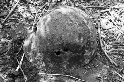 楊國慶將北青報記者帶到附近一座空心敵樓,磚墻上的大小彈孔不計其數(shù),北青報記者還從彈孔內找到一枚子彈。而在上次發(fā)現(xiàn)的埋骨地,楊國慶的金屬探測器又開始嘀嘀作響。