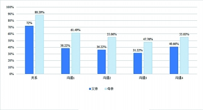 父親與子女的溝通力度小于母親。數(shù)據(jù)顯示,母親最為關(guān)注的是子女的學(xué)校生活,61.49%的學(xué)生選擇了“母親經(jīng)常與我討論學(xué)校發(fā)生的事情”;46.41%學(xué)生認(rèn)為“父親偶爾與我討論學(xué)校發(fā)生的事情”。相比之下,父親反而更加關(guān)注子女的心理健康狀況,40.66%的學(xué)生認(rèn)為“父親經(jīng)常與我討論我的心事或煩惱”,比重高于父親經(jīng)常與孩子談?wù)摗皩W(xué)校發(fā)生的事情”“與同學(xué)的關(guān)系”或“與老師的關(guān)系”,但是仍低于55.03%的學(xué)生報(bào)告“母親經(jīng)常與我討論我的心事或煩惱”。此外,88.2%的學(xué)生認(rèn)為“我和媽媽的關(guān)系非常親近”,72%的學(xué)生認(rèn)為“我和爸爸的關(guān)系非常親近”。由此可見,家長(zhǎng)與子女的日常交流中不僅關(guān)注了他們?cè)趯W(xué)校的表現(xiàn),還包括他們的心理健康狀況。然而與母親相比,父親與小學(xué)生的溝通力度仍顯不足。