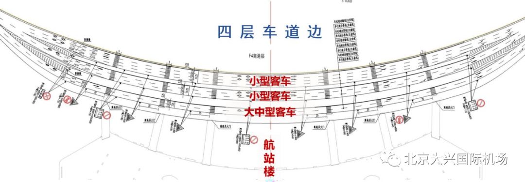 靠近航站樓側(cè)2條車道落客,