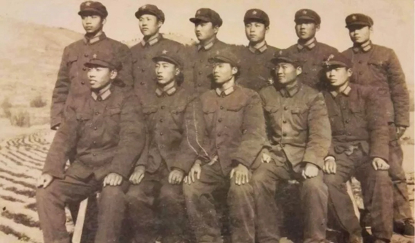 剛?cè)胛椴痪玫捻f昌進和班里戰(zhàn)友合影,前排左二為韋昌進
