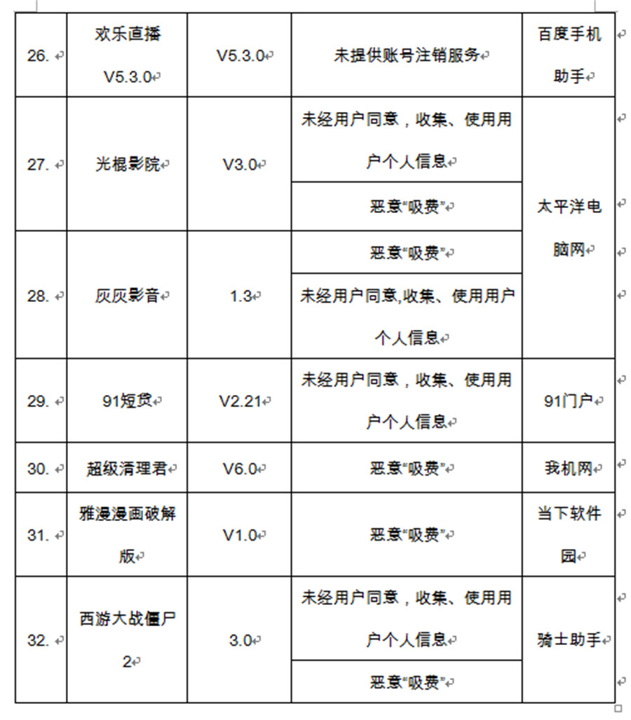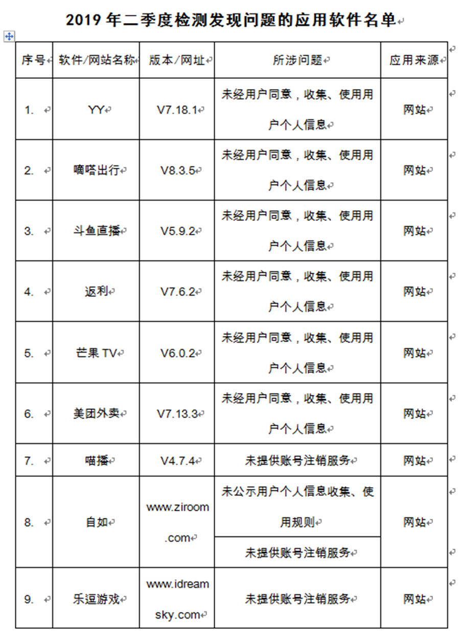 近日,工信部發(fā)布的電信服務(wù)質(zhì)量的通告顯示,2019年二季度檢測發(fā)現(xiàn)問題的應(yīng)用軟件有YY、嘀嗒出行等32款軟件,所涉及的問題包括未經(jīng)用戶同意,收集、使用用戶個人信息;未提供賬號注銷服務(wù);強(qiáng)行捆綁推廣其它應(yīng)用軟件和惡意吸費(fèi)等。