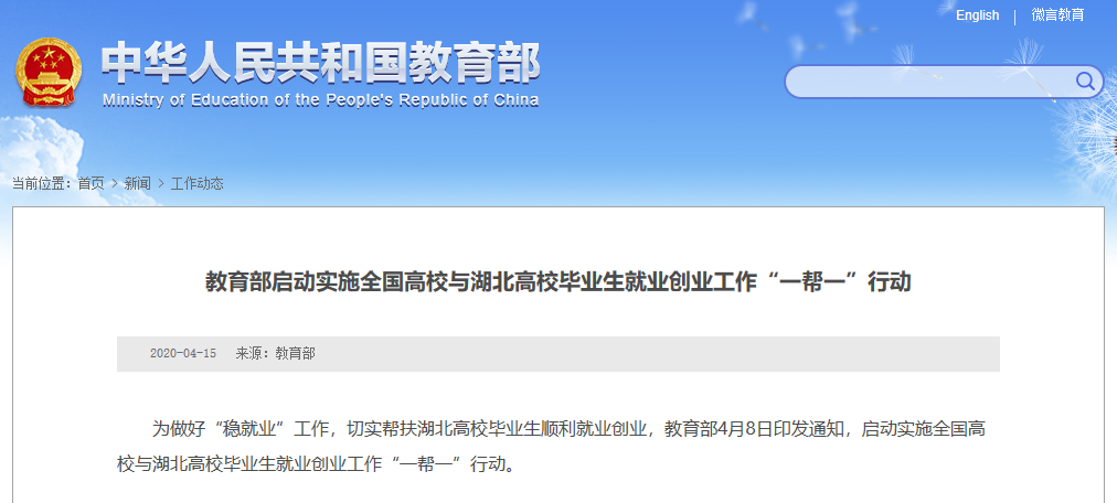 首批48對!全國高校支援湖北啟動就業(yè)創(chuàng)業(yè)“一幫一”行動