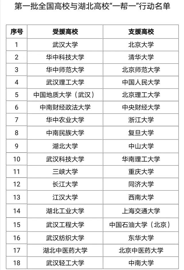 據(jù)悉,“一幫一”行動充分考慮了學(xué)校辦學(xué)類型、就業(yè)工作特點和受援高校需要。首批確定48對高校開展幫扶行動,支援高校包括34所中央部委直屬高校(含30所教育部直屬高校)、4所省屬普通高校、10所全國示范性高職院校;湖北受援高校包括8所中央部委直屬高校(含7所教育部直屬高校)、30所省屬本科院校、10所高職院校。幫扶行動時間定為2020年4月至9月,并將根據(jù)疫情防控安排適時調(diào)整。