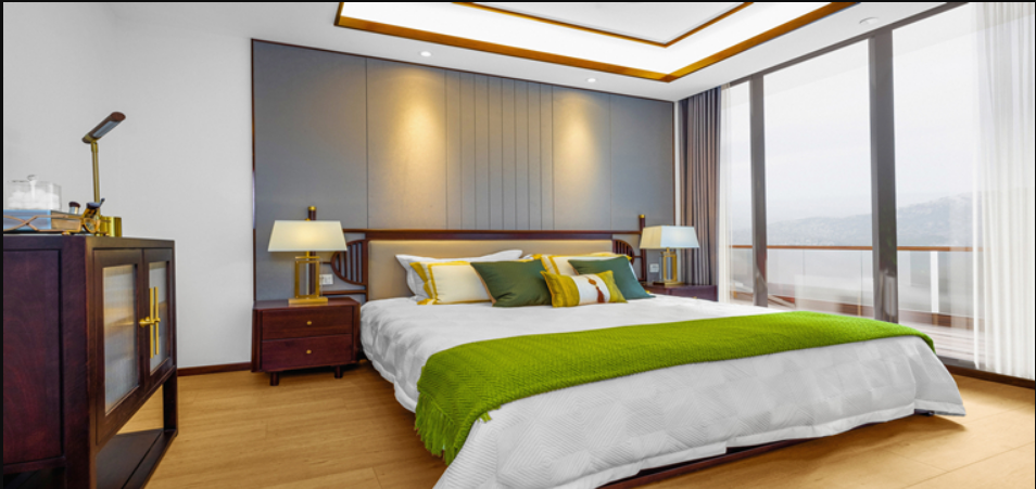 比如,全包圓樣板間紫煙香閣、海棠依舊采用的家具為進(jìn)口金絲檀木、白蠟?zāi)静馁|(zhì),設(shè)計(jì)上不僅飽含中式傳統(tǒng)氣質(zhì)且簡約實(shí)用,還能讓整個(gè)空間凸顯出穩(wěn)重、自然、寧靜的氣息。同時(shí)在整體布局上,家具和氛圍也要結(jié)合好,比如選用有厚重質(zhì)地和素雅圖案的棉織布窗簾與之搭配,顯示出長者的睿智與和善等。