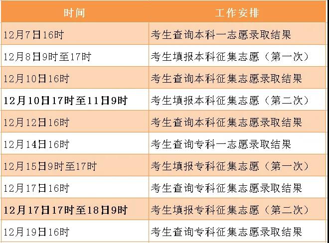 2.每批(不含藝術(shù)類和農(nóng)民工招生專業(yè))一志愿錄取結(jié)束后,各安排兩次征集志愿?忌毺顖(bào)征集志愿才能參加征集志愿錄取。