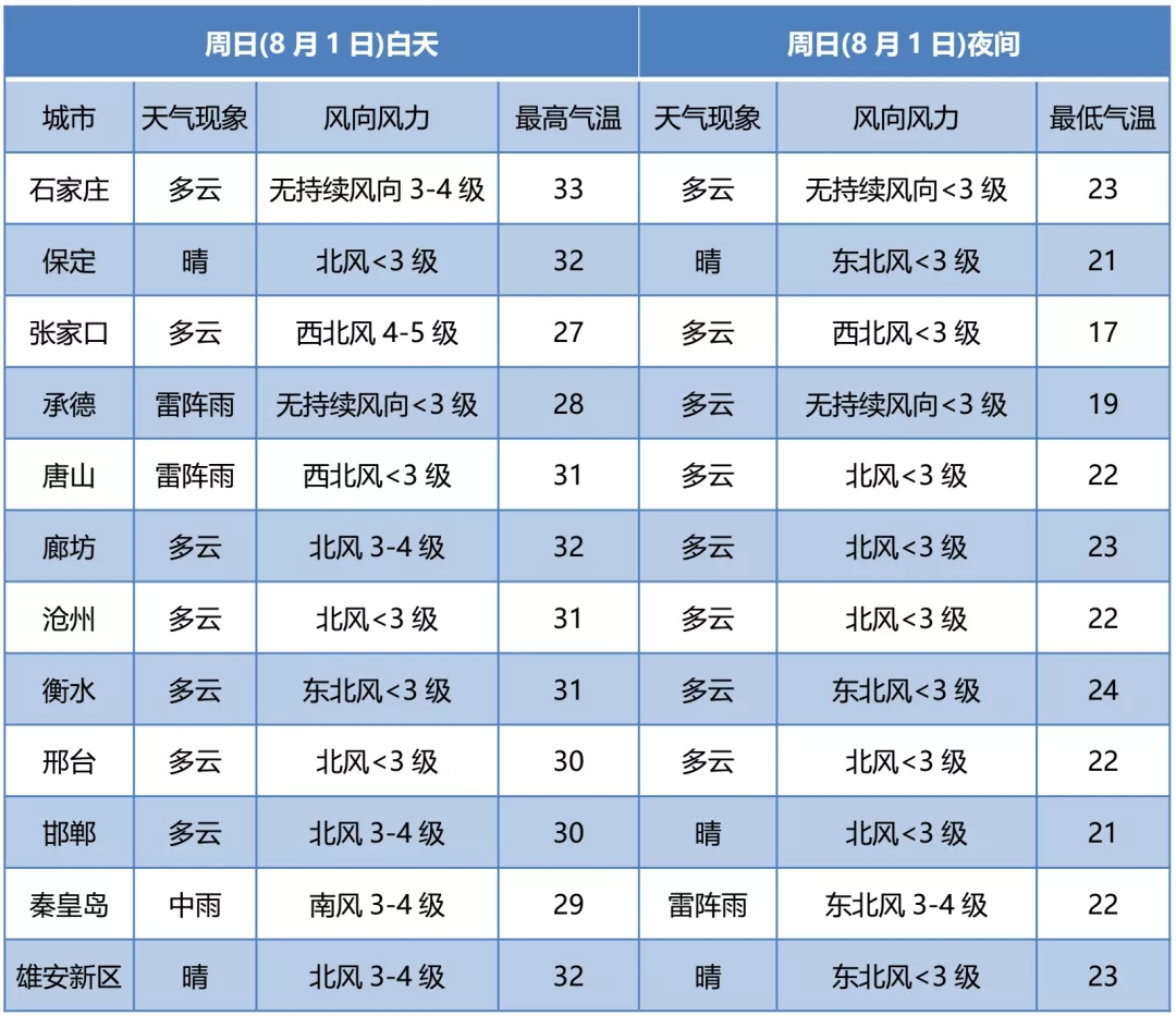 8月1日白天,承德東部、唐山、秦皇島陰有雷陣雨或陣雨,其他地區(qū)多云間晴。