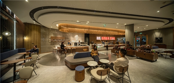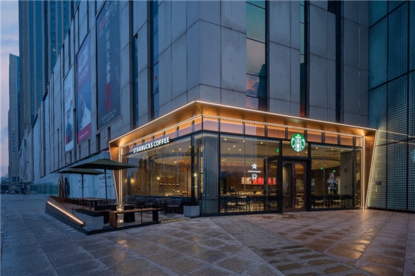 石家莊首家星巴克臻選門店外立面采用古建筑設(shè)計(jì)中“重檐”的造型,并與外擺區(qū)域風(fēng)格融為一體,將空間進(jìn)一步延展,通透的玻璃幕墻映出愜意而溫馨的第三空間,飄溢而出的咖啡醇香也吸引著往來的行人前往打卡休憩。