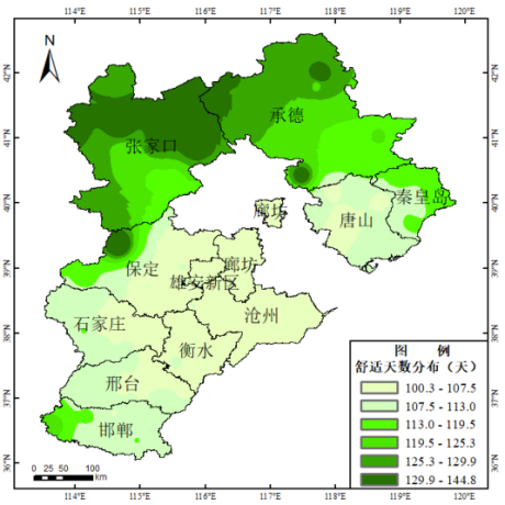 ▲河北省近十年全省人居環(huán)境氣候舒適度空間分布及前十排序
