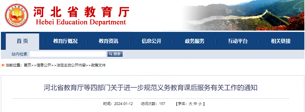 河北省教育廳等四部門(mén)發(fā)布關(guān)于進(jìn)一步規(guī)范義務(wù)教育課后服務(wù)有關(guān)工作的通知
