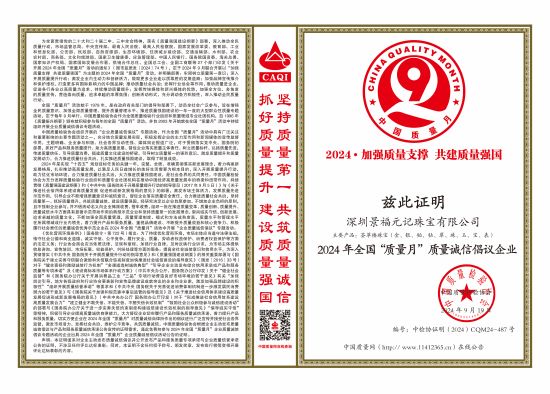 2024年9月,薈萃樓珠寶集團(以下簡稱“薈萃樓珠寶”)應邀參與中國質量檢驗協(xié)會開展的以“加強質量支撐 共建質量強國”為主題的2024年全國“質量月”活動,并獲得“2024年全國‘質量月’質量誠信倡議企業(yè)”的榮譽稱號,再次印證了市場端及廣大消費者對于品牌信譽、產(chǎn)品質量、經(jīng)營服務的充分認可。