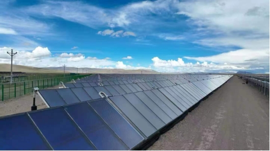 如何才能最大化利用當?shù)氐目稍偕茉、減少碳排放?對此,日出東方進行了深入思考和探索。西藏,是全世界太陽輻射最強的地區(qū)之一,有著得天獨厚的太陽能資源優(yōu)勢。西藏平均每天日照時長8小時,年日照時間居全國之首。在措勤特許經(jīng)營供暖項目中,日出東方創(chuàng)新性地采用了6136塊大平板集熱器,集熱面積達85290.4萬平米,確保了太陽能保證率為100%。項目還配備了4萬立方的蓄熱水池,為穩(wěn)定供暖提供堅實保障。同時,為更好節(jié)省資源并全面提升能源利用率,日出東方并沒有廢棄措勤縣原有的生物質(zhì)熱水鍋爐集中供暖系統(tǒng),而是采用太陽能光熱作為主要熱源、現(xiàn)有生物質(zhì)鍋爐系統(tǒng)作為輔助熱源的集中采暖方式,配置水池作為蓄熱裝置,并對現(xiàn)有供暖系統(tǒng)進行技術改造。