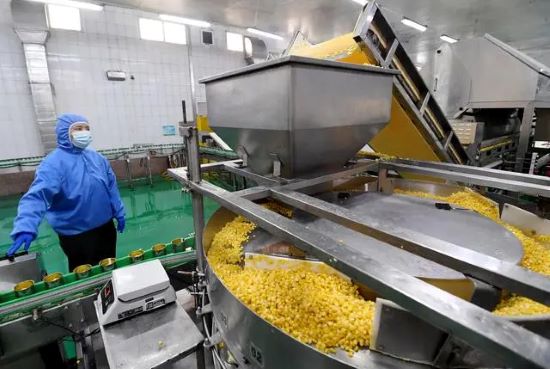 12月8日,在河北省晉州市一家罐頭食品加工企業(yè),工人在玉米罐頭生產(chǎn)線上工作。新華社記者 楊世堯 攝