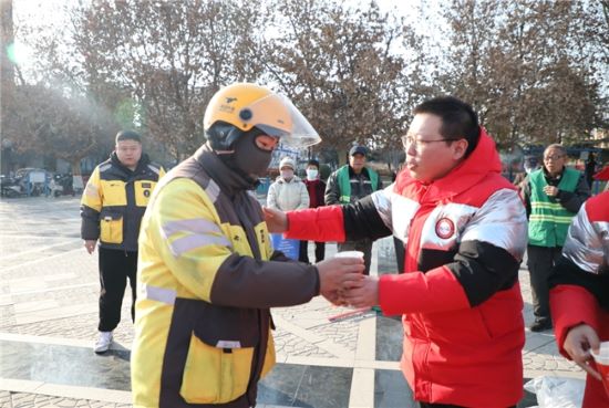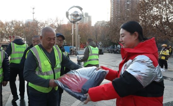 為了致敬仍在一線戶外工作者們,河北廠志愿者們前往主要街道親手為環(huán)衛(wèi)工人遞上暖心飲品和保暖用品,希望能帶去一份關(guān)愛,幫助他們驅(qū)散嚴(yán)寒。