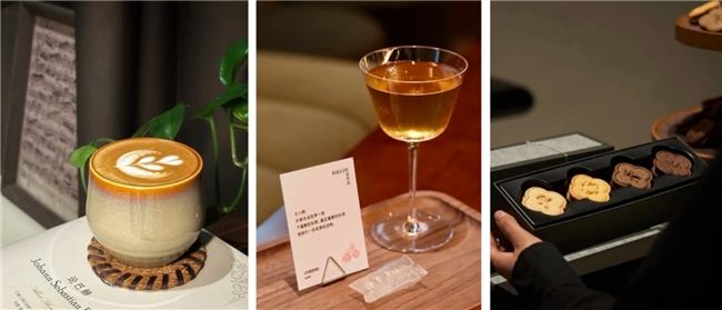 洛克·外灘源街區(qū)內(nèi)不時(shí)推出特色飲品,從左至右分別為ideapod的咖啡、理想國的特調(diào)以及瑭所的甜點(diǎn)