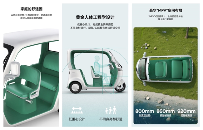 無論是郊野花海漫游,車篷抵御花粉與微風,后坐桶收納野餐裝備,全家圍坐賞景品美食;還是城市綠道騎行,靈活車身穿梭蜿蜒路段,語音控制播放春日音樂,沉浸式感受綠意;無論是親子出游,寬敞空間讓孩子自由活動,儲物格收納玩具零食;還是長輩踏青,舒適座椅與安全配置,讓長輩安心享受春日暖陽,愛瑪樂臻CA900都能完美適配。