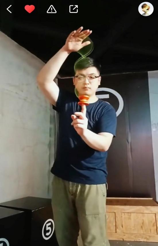 “去年,我看身邊的朋友都在玩快手,我也下載了一個,希望通過快手認識些同道中人。”最初劉子琛在快手上只是看其他人的作品,又一次,他練習(xí)悠悠球的視頻被朋友上傳到了快手,視頻播放量達到了幾十萬。“當時朋友給我看時,我有些不相信,但心里特高興,居然有這么多人看我玩悠悠球。”趁著興奮勁兒,他開始自己在快手上發(fā)布作品(快手號:L597224073)。