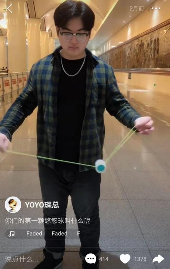 視頻中的劉子琛表情嚴肅,穿著一身西裝,專注地“炫耀”著手里的粉色悠悠球。在一根繩子的牽引下,小球似乎和繩子有著默契的“心靈感應(yīng)”。有網(wǎng)友留言:“你這一身西裝和粉色悠悠球的組合,真是萌到我了。”還有用戶評論道:“要是我小時候能有你一半的技術(shù),我們?nèi)宓男『⒍嫉寐犖业?”評論區(qū)瞬間被80、90后“攻陷”,掀起了對悠悠球的集體回憶熱潮。