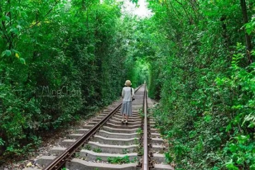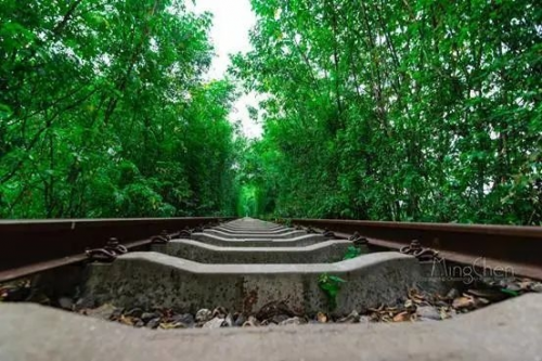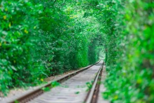 如今廢棄鐵軌成就了令人迷戀的風(fēng)景,鐵路兩邊的樹木枝繁葉茂,連成天然的拱形長廊,將鐵軌化身為“愛情隧道”,上演一段段與眾不同的愛之旅程。