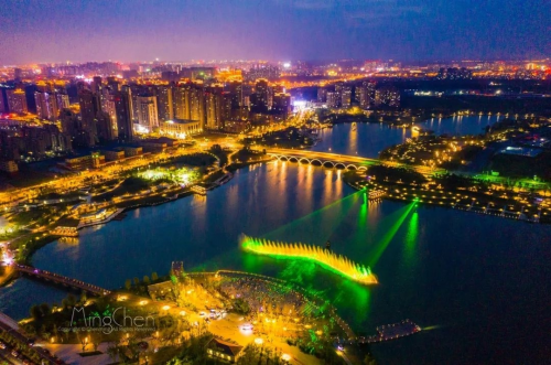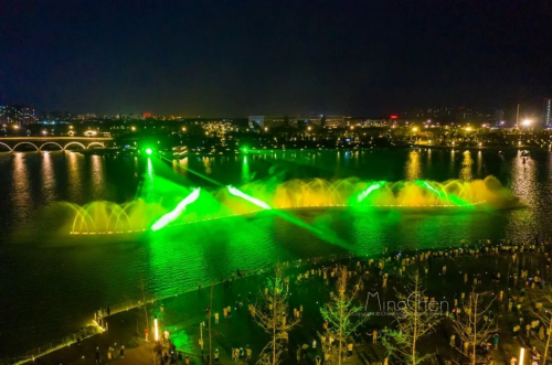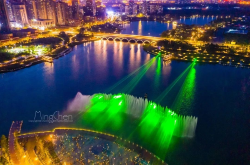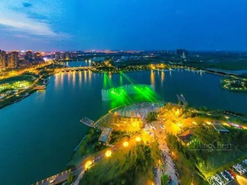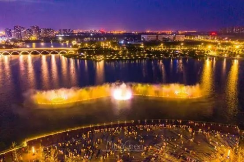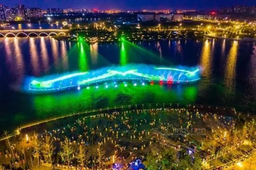 和睦湖音樂噴泉名為“水舞傾城”,長約120米,寬約18米,最高水柱達(dá)100米以上,成為網(wǎng)紅景點(diǎn)。以水秀、水幕電影為媒介,設(shè)計(jì)主題為“和諧發(fā)展百花齊放”,結(jié)合聲、光、電、火,將人與水、人與火、人與樂融為一體,綻放浪漫、綻放激情。