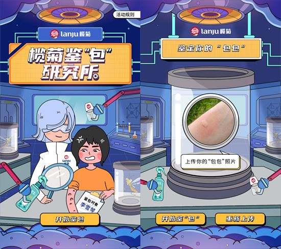 五一期間,欖菊還上線了一款"智能鑒包"的互動(dòng)H5.讓網(wǎng)友們可以通過H5上傳"蚊子包"照片,獲取相關(guān)蚊蟲的專業(yè)解讀和驅(qū)護(hù)建議,既滿足了數(shù)百萬網(wǎng)友對蚊蟲相關(guān)知識的好奇心,也讓大家在參與過程中自然而然地建立了完備的蚊蟲防制知識體系。