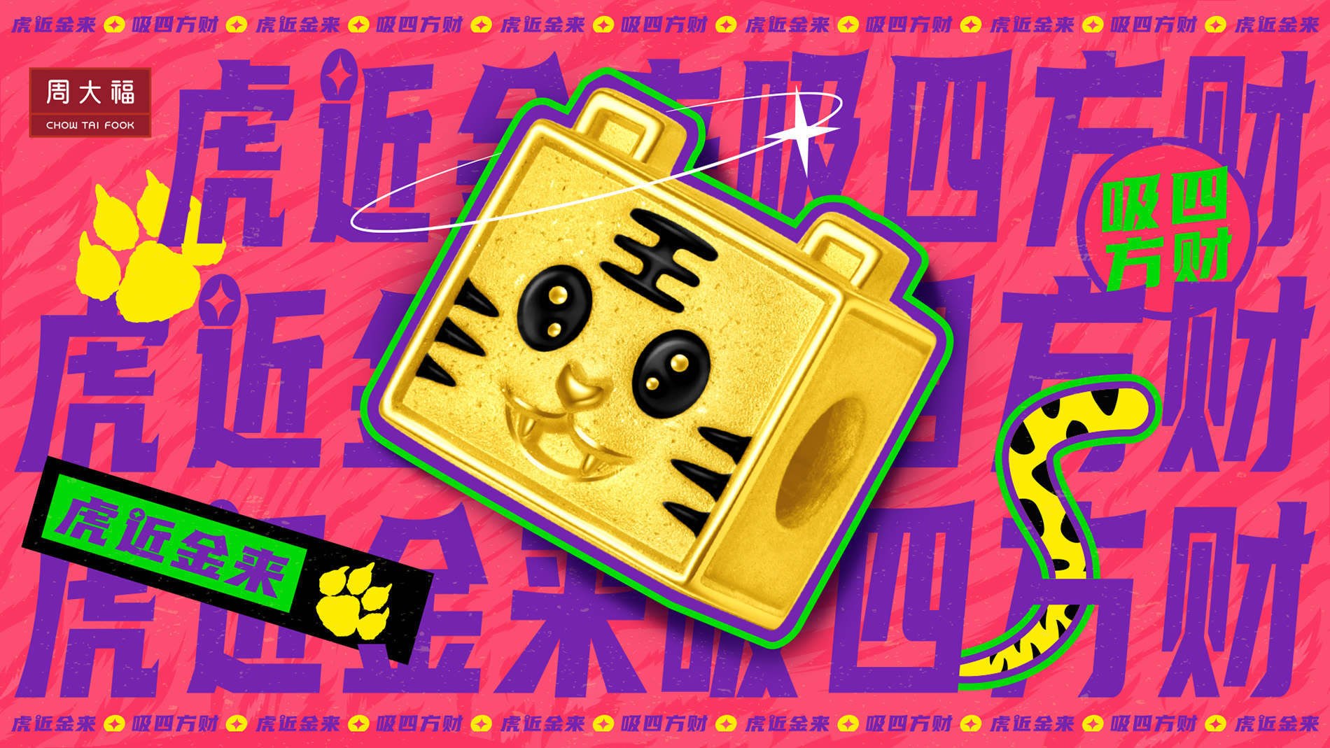 周大福·虎年生肖“虎近金來”率領著更多虎年新品成員帶著祥瑞而來,組建成“虎”氣綿綿的方圓宇宙,為你吸財納福。