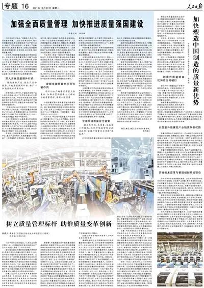 《 人民日報(bào) 》( 2021年12月20日 16 版)《加強(qiáng)全面質(zhì)量管理 加快推進(jìn)質(zhì)量強(qiáng)國建設(shè)》中,習(xí)近平總書記指出,“質(zhì)量是人類生產(chǎn)生活的重要保障。人類社會發(fā)展歷程中,每一次質(zhì)量領(lǐng)域變革創(chuàng)新都促進(jìn)了生產(chǎn)技術(shù)進(jìn)步、增進(jìn)了人民生活品質(zhì)。中國致力于質(zhì)量提升行動,提高質(zhì)量標(biāo)準(zhǔn),加強(qiáng)全面質(zhì)量管理,推動質(zhì)量變革、效率變革、動力變革,推動高質(zhì)量發(fā)展。”