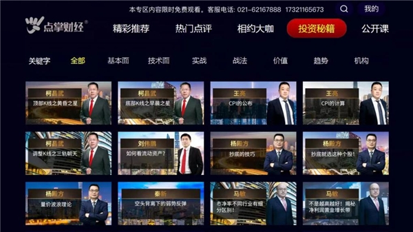 作為河北IPTV財經(jīng)頻道內(nèi)容提供方,點掌財經(jīng)是上海點掌文化科技股份有限公司打造的專業(yè)財經(jīng)品牌,也是國內(nèi)知名的社交金融平臺之一。作為國內(nèi)每日直播的財經(jīng)平臺,點掌財經(jīng)內(nèi)容生產(chǎn)能力在專業(yè)財經(jīng)機構(gòu)中名列前茅。與正襟危坐的傳統(tǒng)風(fēng)格不同,點掌財經(jīng)的嘉賓點評犀利,特色鮮明。由股市神甫之稱的財經(jīng)界知名主持人左安龍奠基創(chuàng)立,財經(jīng)名家錢啟敏、竇維德坐鎮(zhèn), 更有新晉預(yù)言帝毛利哥、千鶴助陣,點掌財經(jīng)匯聚了國內(nèi)數(shù)百名財經(jīng)名家組成“磚家團”,共同打造“與靠譜的人一起聊股票”的投資者互動平臺。