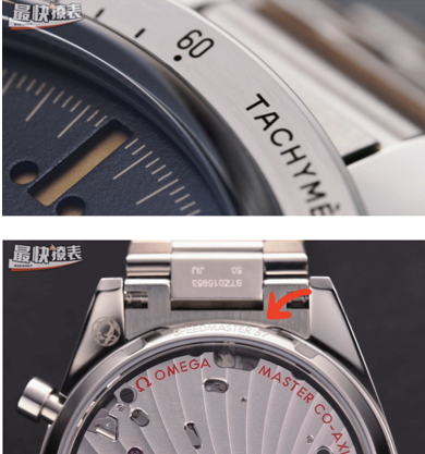 腕表的表圈都采用拉絲工藝,并飾有經(jīng)過黑化處理的測速刻度,表背上鐫刻著“Speedmaster '57”字樣,藍(lán)寶石玻璃表背內(nèi)部也均有防反光處理,保證了咱欣賞機(jī)芯的時候是又方便又好看。