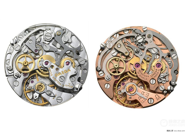 歐米茄3861機(jī)芯(左)、歐米茄321機(jī)芯(右),可見兩者的區(qū)別。