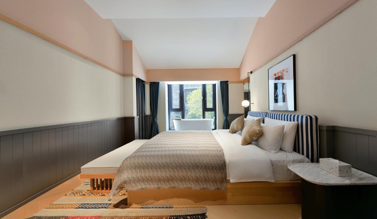 鮮少有幾座城能像南京一樣,把新與舊對(duì)話得如此深刻!噶瘎俚、十代都會(huì)」的南京,曾是山水城林的金粉之地,諸多名號(hào)中,以金陵最為感懷。南京老門東花間堂·朱雀里位金陵風(fēng)光中心地帶,有謂十里秦淮燈火燦,大隱于此,居鬧市而不喧。“朱雀”之名取古詩(shī)“笙歌濃酒盈朱雀,古籍奇珍滿烏衣”的美好意念,念古情懷,由一磚一瓦一橋一井間流淌而出,引領(lǐng)旅人放慢步調(diào),探尋城南往日生活。 酒店保留了原生古宅院落的樣貌基礎(chǔ),沿用明清時(shí)期的木質(zhì)建筑風(fēng)格,以青磚灰瓦嵌入傳統(tǒng)肌理,將隱于小巷中的老宅與臨街新宅,自然地交融在一起。遠(yuǎn)觀之下,酒店在街區(qū)一眾古建中鋪陳開來(lái),像是無(wú)意間闖入百年前的時(shí)光,步入院落后卻自成天地,大有“庭院深深深幾許”的意味。酒店共有38間客房,6種房型。依房間臨外景、內(nèi)景的不同,取古代詩(shī)詞里的中式意蘊(yùn)命名:浣花、來(lái)燕、璧月、采薇、吟桐、宜和。在設(shè)計(jì)上,客房延續(xù)中式的優(yōu)雅恬靜,素凈的東方格局明亮而通透,傳統(tǒng)簡(jiǎn)潔的門窗、隔屏卻又守住古香古色的味道。清晨,從帶著南京雅物的房間醒來(lái),開啟一天生活的自得。特別推薦親子度假、自然人文探索與攜寵出行客群前往體驗(yàn)。