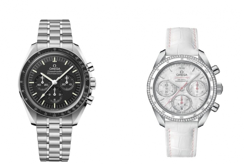 與之搭配的超霸系列38毫米腕表則采用精鋼表殼,搭配白色珍珠母貝表盤和白色皮表帶。腕表表圈鑲飾美鉆,獨(dú)具匠心的雙重表圈設(shè)計(jì)將鉆石的閃亮光澤與超霸原型表款的運(yùn)動(dòng)精神完美融合。腕表表盤配備3個(gè)橢圓形小表盤,6點(diǎn)位設(shè)有日歷窗,令人眼前一亮。橢圓形小表盤搭配鑲鉆表圈,時(shí)針、分針及秒針均經(jīng)過鍍銠處理,計(jì)時(shí)指針則覆以粉色亮漆。腕表的表背浮雕有品牌標(biāo)志性的超霸系列海馬徽章圖案,內(nèi)部搭載歐米茄3330同軸機(jī)芯。