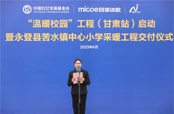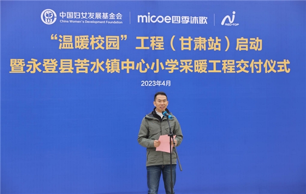 4月21日,四季沐歌集團(tuán)攜手中國(guó)婦女發(fā)展基金會(huì),共同啟動(dòng)甘肅10所學(xué)校“溫暖校園”工程,并在蘭州市永登縣苦水鎮(zhèn)中心小學(xué)舉行采暖工程交付儀式。此次活動(dòng)得到了甘肅省婦聯(lián)、蘭州市婦聯(lián)及永登縣委、縣婦聯(lián)等相關(guān)部門和紅頂公益組織的大力支持。