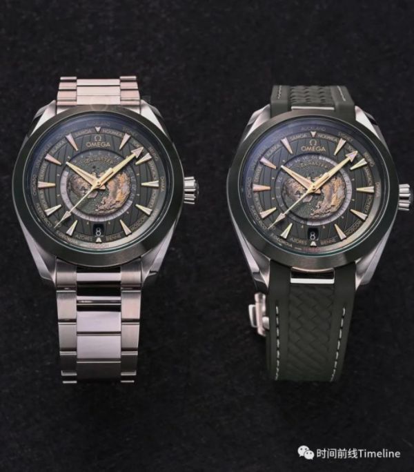 鋼殼綠盤,整表抓人眼球;鈦殼灰盤,彩色地球更加突出。