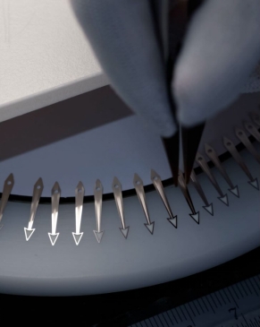 盤面指針、時標,保持了海馬系列Aqua Terra腕表一貫的“闊劍分針”、三角立體時標。從細節(jié)上我們可以看到,指針、時標,都有多個切面,拋光、拉絲交替,增加反光。與多彩的盤面完美搭配,大幅提升了Aqua Terra Shades腕表的辨識度和時尚感。