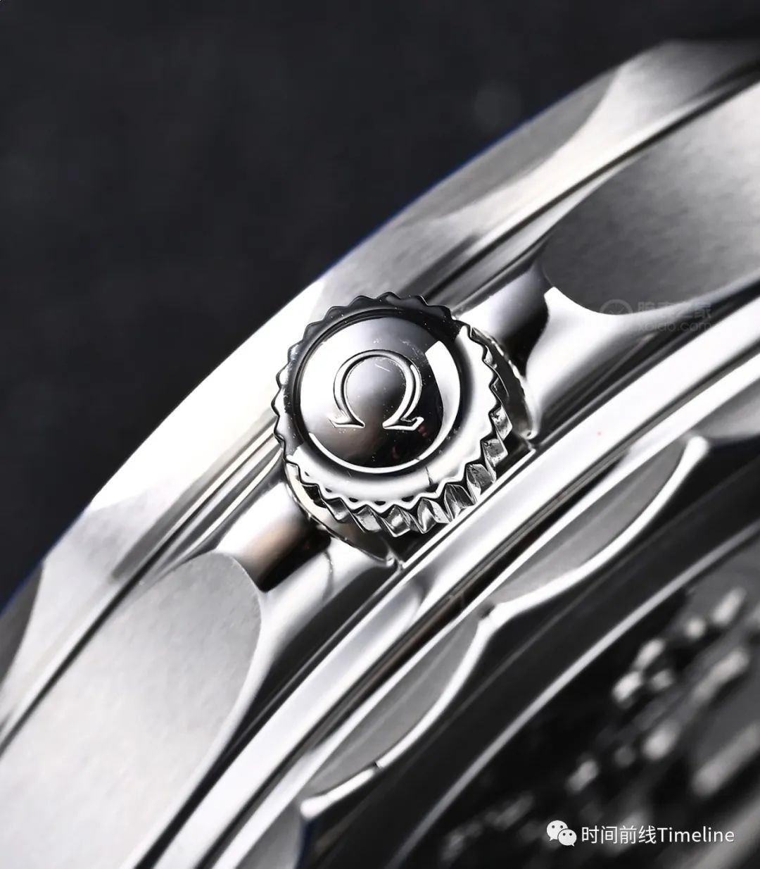鋼殼,42毫米,厚13.5毫米。10點(diǎn)位有排氦閥,依然是歐米茄標(biāo)志性的表耳,可配鋼鏈、膠帶。其中膠帶就是針扣,鋼鏈表扣有微調(diào)功能,可滑動微調(diào)。