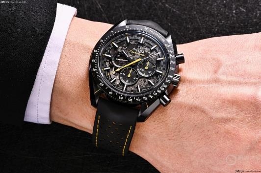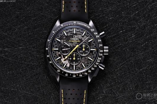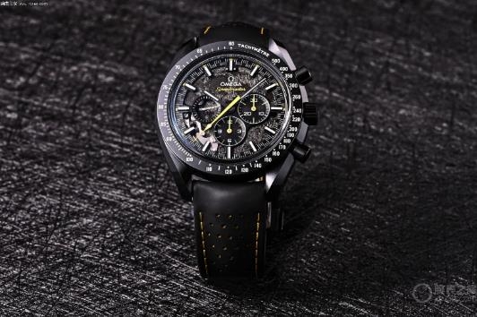 歐米茄也并不是第一次在腕表上采用陶瓷材質(zhì),但這枚腕表將材質(zhì)和工藝的結(jié)合發(fā)揮到了極致。這款風(fēng)格大膽的陶瓷計(jì)時(shí)碼表,整枚腕表采用黑色陶瓷打造而成,中央計(jì)時(shí)秒針飾以黃色亮漆,表圈飾有激光鐫刻的亮白色琺瑯測(cè)速刻度。