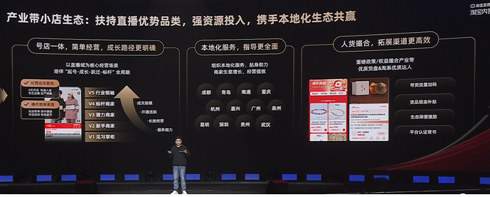 此次盛典,程道放談到關(guān)于產(chǎn)業(yè)帶戰(zhàn)略規(guī)劃,“今年在產(chǎn)業(yè)帶也會(huì)加入比去年更重磅的支持力度,將投入數(shù)百億流量和數(shù)十億資金支持,賦能產(chǎn)業(yè)帶發(fā)展,通過(guò)“號(hào)店一體”經(jīng)營(yíng)交易體系,助力商家零元開(kāi)店、高效開(kāi)播和破圈成長(zhǎng)。”